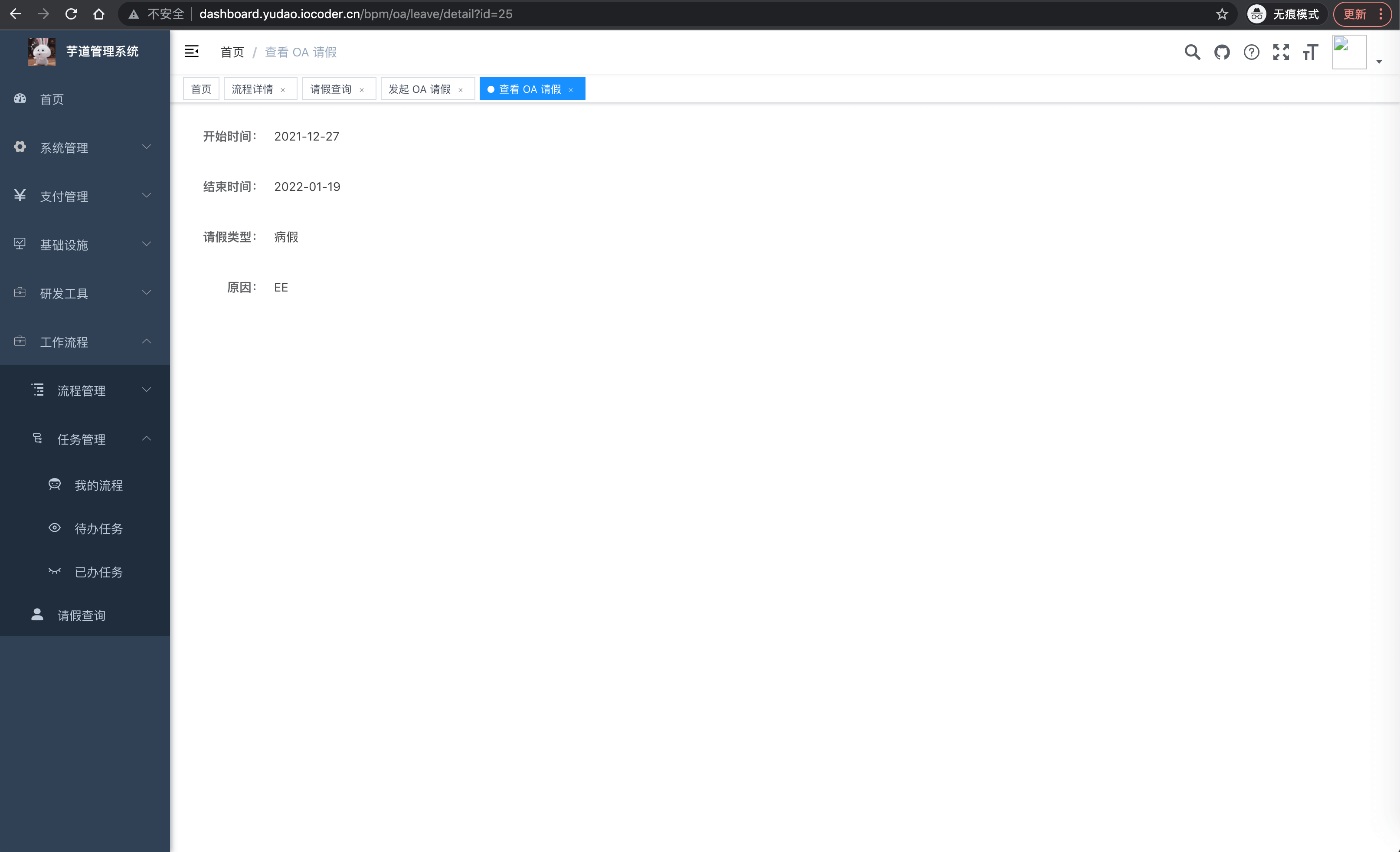 OA 请假 OA请假-列表 OA请假-发起 OA请假-详情